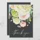 Beautiful watercolor of white and green hydrangeas with pink and cream roses, daisies, small blossoms and leaves are featured on the front of these light onyx black wedding thank you cards. Your photo and message are printed on the back. MATCHING items in our collection.