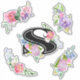 Sprays of chic pastel watercolor style pink, blush and lavender flowers with cool black custom font letter S.
