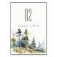 Chic watercolor Pine Forest Landscape Wedding Table Number