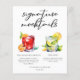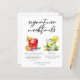This trendy signature mocktails menu sheet features 2 cute drawings of non-alcoholic drinks and their ingredients for your wedding bar. A Negroni (nogroni) and Mint Julep add a cool flair to your bar menu. Complete with the couple's names and date for their reception.
