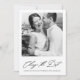 Elegant calligraphy photo change the date wedding postponement announcement. This black and white announcement is a simple way to let invited guests know that your wedding date has been changed, and provide them with the new rescheduled date.