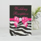 Chic Wedding Reception Zebra Stripes Hot Pink Bow Invitation