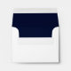 Chic wedding envelope is completed in crisp white on the outside and dark navy blue on the inside! This solid color envelope has been designed to coordinate our elegant style items that are labeled as Elegant Dark Blue Border. Use the template to customize with your return address in the coordinating design. E-mail invitationsuites@gmail.com with questions or custom requests.