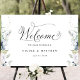 Welcome your guests to your wedding with this elegant sign. Ability to change text to any other event. Design with modern hand written calligraphy details and exquisite watercolor greenery and white and blue flowers framing the sign. 36" x 24" is simply our default size, you have the ability to choose from a great variety of size options. Easy to frame or glue/staple to inexpensive MDF for display. "IMPORTANT NOTE: This sign is in premium poster paper style, easy to frame or glue/staple to inexpensive MDF or foam board for display. If you prefer this sign prepared for display already in a foam board, please follow these easy steps: on this sign product page, scroll up, until you see a section with images called "Transfer design to a product". Use the arrow on the images to look at all the options, until you reach the "Foam Boards" option. Click on it, and it will transfer the design into a foam board for you. Initially sometimes it transfers the design into a very big foam board size, nevertheless you can change the sign into the size you need right there on the product page and even see how it looks already in a stand. When you add this design into your shopping cart, it will tell you the back side is in blank. Don't worry about it, as this only means that the back of the sign will be white. If you need help, please send me a message and I'll get back to you as soon as possible". Part of our "Elegant Bliss" collection with a variety of coordinating invitations, insert cards, rsvp cards, mailing accessories, save the dates, thank you cards and event signs and products.