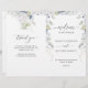 Welcome your guest with this exquisite wedding ceremony program, featuring gorgeous watercolor greenery and floral details and hand written typography details elements. Personalize the wording in all sides as you like. NOTE: this programs arrive flat and require folding down the middle to assemble. The default value paper is recommended. For a clean fold we suggest the use of inexpensive bone folder. Ability to change text position and sizing by selecting "customize further". Greenery and floral in a beautiful blend of white, blue and green hues. Part of our "Elegant Bliss" collection with a variety of coordinating invitations, insert cards, rsvp cards, mailing accessories, save the dates, thank you cards and event signs and products.
