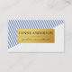 Chic White Blue Stripes Pattern Faux Metallic Gold Business Card
