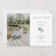 This beautiful oh so chic and minimal, white wedding 'Save The Date' card showcases a couple photo, a floral blue hydrangea design, elegant brush script text, event date and address, along with a contemporary set of fonts. Youthful and trendy, this horizontal card sets a joyful tone.