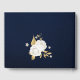 beautiful elegant white flowers with some gold leaves chic navy blue guest book.