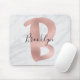 Chic white and gray marble rose gold letter B monogram name mouse pad. This trendy design features a large metallic rose gold letter "B". The letter cannot be change, but please see my rose gold alphabet collection for other letters. Your custom name is written in an elegant hand lettered script. A perfect birthday or Christmas gift!