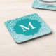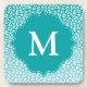 Chic White Leopard Spots on Turquoise Monogram Beverage Coaster