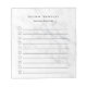 Personalize this chic to-do list notepad with a name and an additional line of custom text (shown with "important things to do") in modern black lettering on a trendy pale gray and white veined marble background. Lined checklist notepad makes it easy to keep track of your important tasks in style.