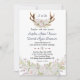 Chic White Roses Burgundy Antlers Navy Wedding Invitation