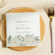 A simple watercolor border of elegant white roses with your name in classic gray font adorn this plain, chic and elegant wedding napkins.