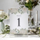 Chic botanical table number cards feature border of white and ivory roses and soft green foliage in watercolor soft colors framing your table number in classic gray font . Matching "White roses garden wedding collection"