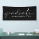 Chic minimal black banner for your graduation party featuring "graduate" in a modern white script and the graduate's name and class year in simple white typography.