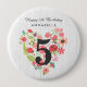 Chic White Wood & Whimsical Floral Happy Birthday Pinback Button