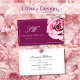 Chic Wine Red and White Pink Rose with Initials Business Card