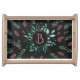 Chic Wine-Red, Green, & Black Botanical Monogram Serving Tray