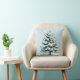 Chic Winter Watercolor Snowy Spruce Tree Monogram Throw Pillow