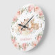 Chic Woodland Animals Pastel Blush Floral Gold Large Clock
