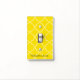 Chic yellow quatrefoil pattern light switch cover with personalized name. Elegant detail design with customizable background color to match living room, baby nursery room, kids bedroom, office etc. Fancy luxury wall case decoration. Classy home decor idea for your beautiful interior. Add name or quote optionally. Goes well with gray color combination.