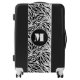 A stylish zebra print, your name on the top and your initial monogram on the front decorate this suitcase. Choose the color of your suitcase shell, the handle, wheel covers and bumpers. The perfect personal gift or accessory for any occasion! MATCHING luggage tag, drawstring bag, cell phone case and more in our travel collection.