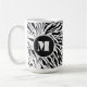 A stylish mug features a black and white zebra print accented with your chic initial monogram. Create for yourself or give as a gift. MATCHING items in our store.
