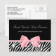 A chic pink and black boutique thank you postcard with a trendy zebra print and a cute light pink ribbon tied into a girly bow. Personalize this stylish animal pattern design by adding the name of your website. Flat printed image, not actual bow.