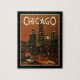This dramatic skyline of Chicago at night is just the thing for vintage lovers with a love for cities. Chicago, Illinois vintage travel design.