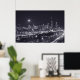 Night time photograph of Chicago, Illinois. Image from the west side of Chicago. This image is black & white with a slight blue tone by design.