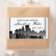 This modern wedding invitation set, called Chicago Destination Wedding has a bright white background. There is a double border in black and at the bottom an illustration of the Chicago skyline. This set has invitations, save the date cards, response cards, thank you cards, table number tent cards, envelope seals, wine labels, binders, return address labels and many more day-of wedding stationery pieces, favors, and gifts available. Use the envelope seal stickers for any of your DIY gifts - these are available in both large and small sizes! All elements are printed on our high quality products, they do not include any real gold, jewels, embossing, or other textile elements. All designs are copyright Noteable Expressions, Inc. All rights reserved.