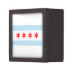 Design based on Chicago's flag with white, light blue stripes and red stars.