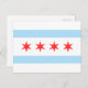 Postcard featuring the Chicago flag with two blue stripes and four red six-pointed stars.