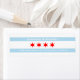 Send out mail with these colorful and bold Chicago themed return address labels featuring the Chicago flag with four red 6-pointed stars and two light blue stripes. The design features a printed font for the name and address, both in a complimentary white.