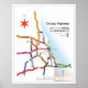 A map that helps decipher those cryptic highway names in Chicago traffic reports. Where is the Dan Ryan? Which ones are I-94? Is it the Merge, or the Junction? Toll roads, highway names, and interstate numbers are marked, as well as major landmarks and streets referenced in traffic reports.