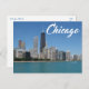 This fun travel post card features an image of the Chicago, Illinois skyline. Chicago is nicknamed the windy city and is the third largest city in the United States.