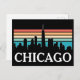 Chicago Illinois Vintage Retro Sunset Skyline Postcard