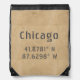 Chicago IL latitude and longitude coordinates in grey modern, urban font on waterstained cardboard background