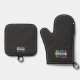 Fun and bold Chicago kitchen oven mitt and pot holder set features a Chicago typography and graphic. Great for Chicago residents and fans. Black oven mitt and pot holder set with a nice colorful color palette. Customize the text on the kitchen apron or leave as is. Create your own Chicago black kitchen oven mitt and pot holder set.