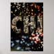 Iconic Chicago figures and landmarks are arranged together inside of the letters CHI, floating amongst atmospheric, out-of-focus lights captured from around Chicago at night.