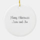 Lightweight, smooth, pure white ornament with nice sheen. Perfect size to be seen from across the room ... and to attract closer inspection! Price was great for ordering enough for the whole family! Clear, bold black design just as requested. Matches the order exactly. Just so nice!