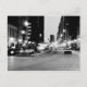 A guy runs across the road in front of the night traffic in downtown Chicago - Black and White