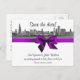 Chicago Skyline Etched BW Violet Save the Date Announcement Postcard