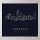 This design features a hand drawn sketch of the city of Chicago skyline on a dark background.