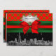 Chicago Skyline, Red Green Quatrefoil Xmas Invitation