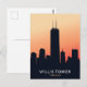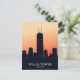 A minimalist vector illustration focusing on the silhouette of the Tower and the surrounding skyline against an orange sunset.