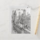 This travel postcard, in hand drawn sketch-style, showcases a sketch of Chicago's skyline.