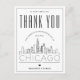This special thank you postcard is tailored to the guest who attended your wedding in the beautiful city of Chicago, Illinois. It features a stylized skyline of the city on the front of the card. On the reverse is a spot for your unique message. Use the customization functions to even add a photo if you please.