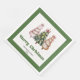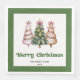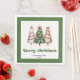 Modern Christmas dinner napkins featuring three minimalist watercolor Christmas trees in earthy green and gold with playful leopard pattern accents and hand-drawn lettering. A stylish choice for festive tables, these napkins are personalized with your custom name, adding a unique and elegant touch to your holiday dinner or Christmas party décor. 🎄✨
