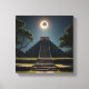 The majestic pyramid of Chichen Itza silhouetted against a night sky during a total annular solar eclipse.